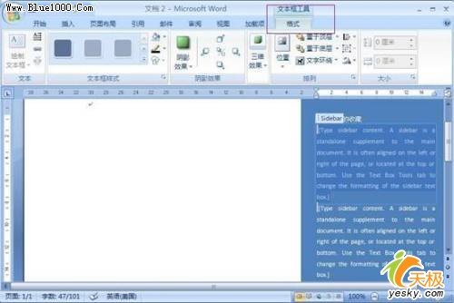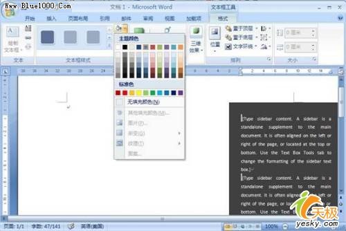 3、 word2007提供了多达三十多种样式供选择,主要排版位置、颜色、大小有所区别,你可根据需要选择一种。插入后可看到文本框工具栏已经弹出,输入你所需要的内容,之后对文本进行美化。