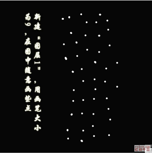 2、新建一个图层,得到“图1”,选择画笔工具,笔刷大小设置为9像素,不透明度设置为:100%,在图中随意画些白点,效果如下图。