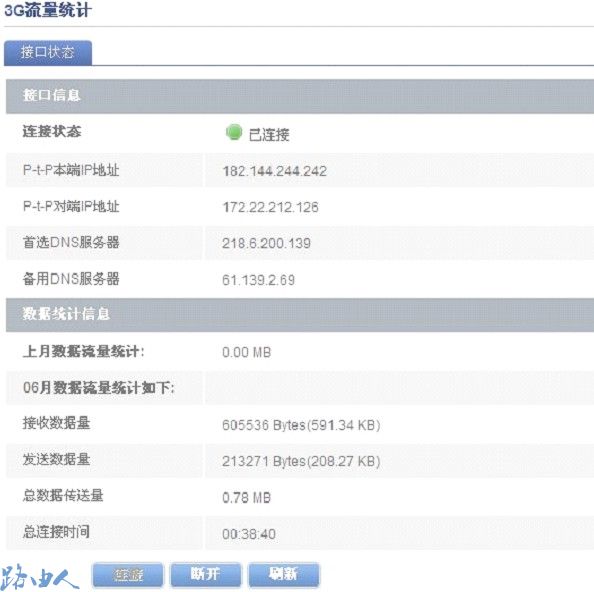二、配置并保存后,便可轻松连接,此时内网计算机就可直接通过3G网卡访问互联网