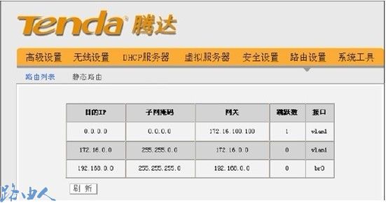 大家都知道,静态路由和路由列表是路由器的重要功能,为了完成经过路由器的每个数据包寻找一条最佳传输路径,并将该数据有效地传送到目的站点这项工作,在路由器中保存着路由表,供路由器选择使用。下面,我们以腾达无线路由为例介绍路由表的查看以及静态路由的设置的内容。