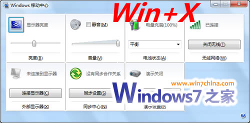 | Win + X | 打开移动中心 |