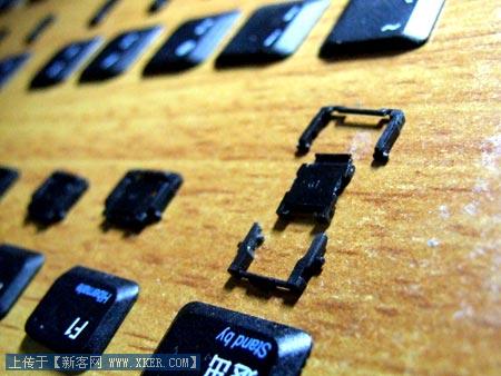 前些日子的某天晚上,不小心把一大杯桔子汁碰倒,小银男的键盘里被灌了一些。老婆闻讯赶来帮我把里面的水迅速倒出来。用了用,还比较OK。庆幸了没多久,可能里面的水被烤干了,桔子汁变得越来越粘,敲起键盘很是难受。于是决定拆开键盘,大清洗一下。