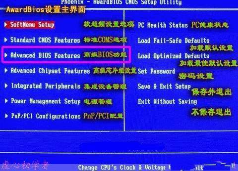 进入主界面后,选择第三项,高级BIOS功能。
