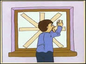 6.如果你已经在结实的房屋里,则应小心关好窗户,在窗玻璃上用胶布贴成“米”字图形,以防窗玻璃破碎。