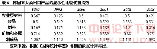 根据公式(1)和《国际统计年鉴》的分类数据,我们计算出了中国五大类出口产品在不同时期的显示性比较优势指数(见表1)。