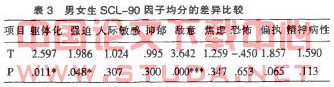 为了进一步明确男女生在心理健康水平方面是否存在显著差异,本文进行了独立样本T检验,结果如表3。