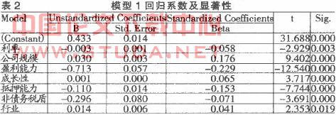 (一)实证检验分析从(表2)中可以看到,利率与上市公司资本结构之间在l%的水平上显著负相关,说明我国上市公司资本结构会随着利率的提高而显著降低。验证了本文提出的假设1。另外,公司规模、盈利能力、成长性、抵押能力、非债务税盾、行业这些因素也显著地影响企业的资本结构。