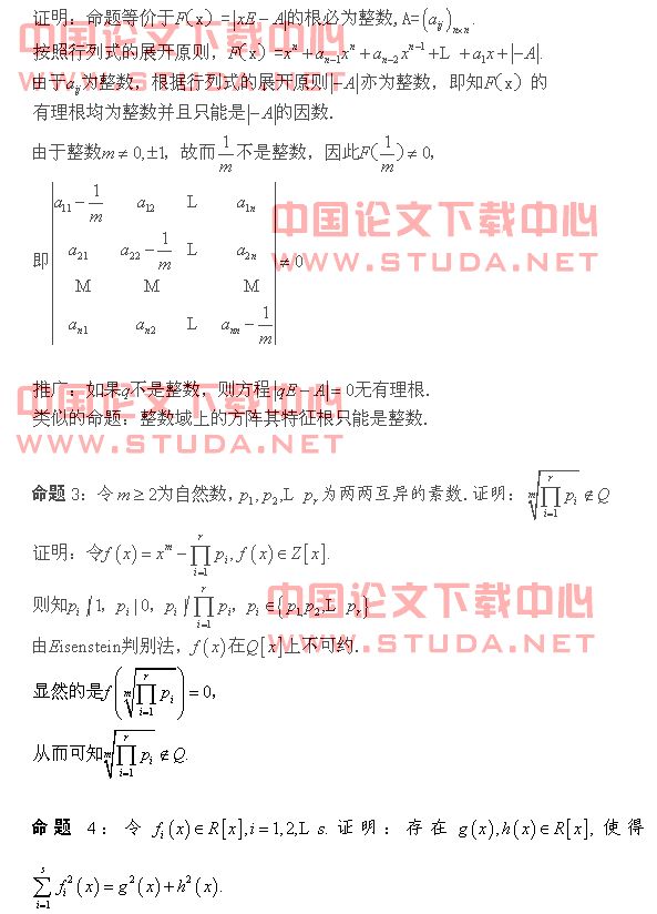 摘要:本文从高等代数课程中择选几个有代表性的例题,简要说明了构造法的应用。