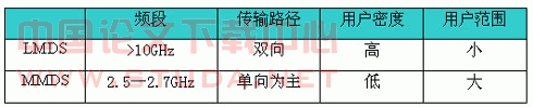 MMDS最初用于单向传输的影像广播服务,包括城市与城市之间的无线网络系统。现在则可以采用双向的数据业务传输,允许更加灵活地使用MMDS频谱。而LMDS技术,则属于区域性的无线技术,可被应用在城市内、郊区等小范围的通信网络,它们的比较如表1。